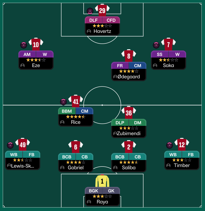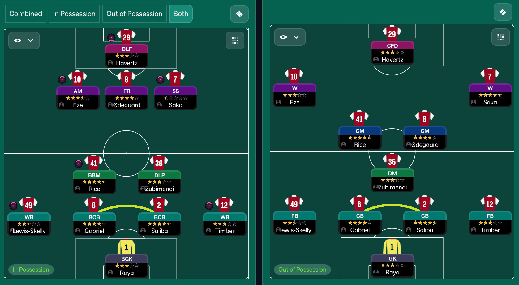 Zonally balanced out-of-possession shape with a more fluid, relational in-possession shape creates beautiful ‘combined’ shapes, crying out for Max Dowman and Ethan Nwaneri to break through.