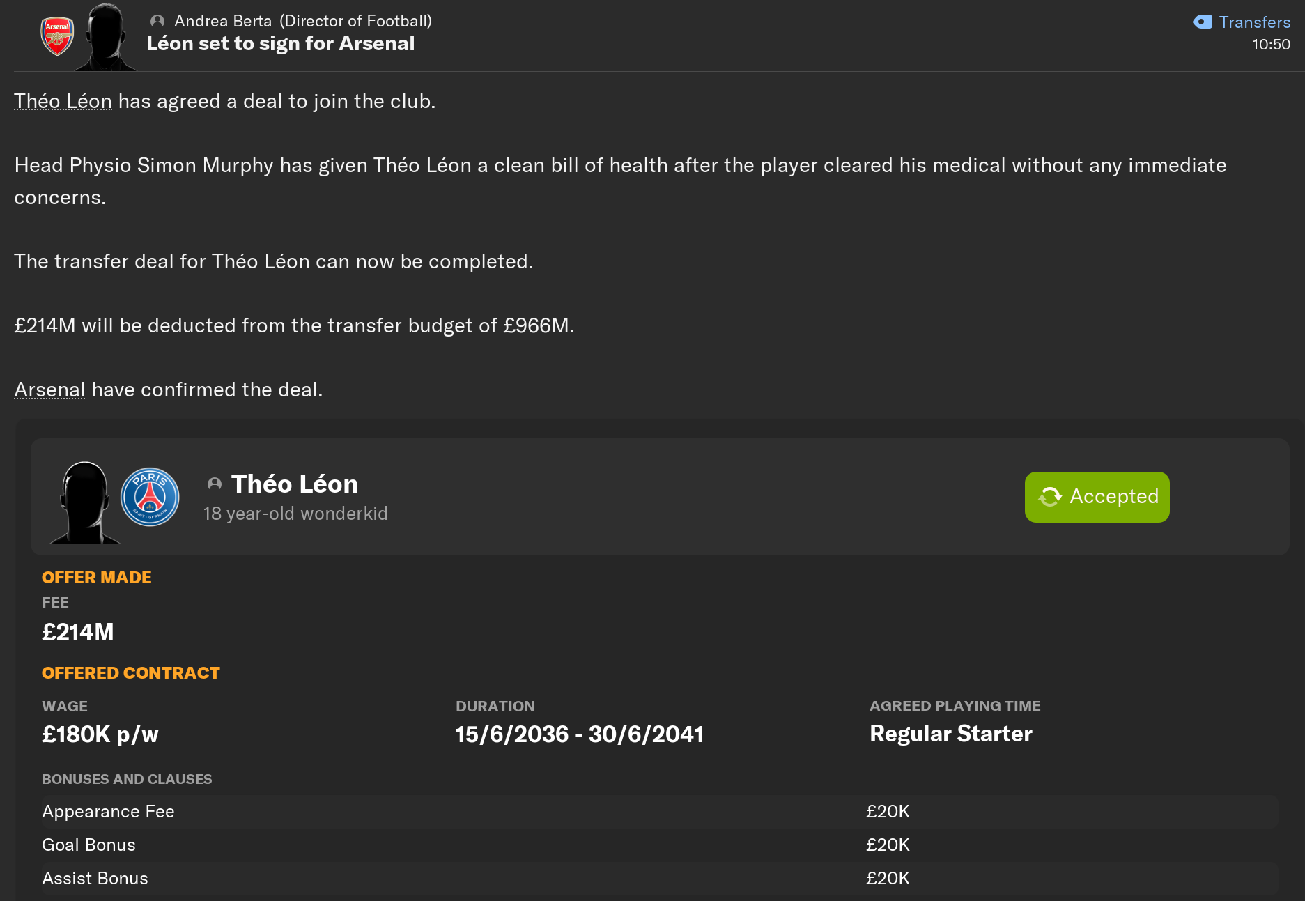 The downside, Léon will start his life at Arsenal playing in the wide channels. However, with Saka having turned 35 years old, Léon can adapt to the Premier League outside of the spotlight before fully taking the reins in a season or two.