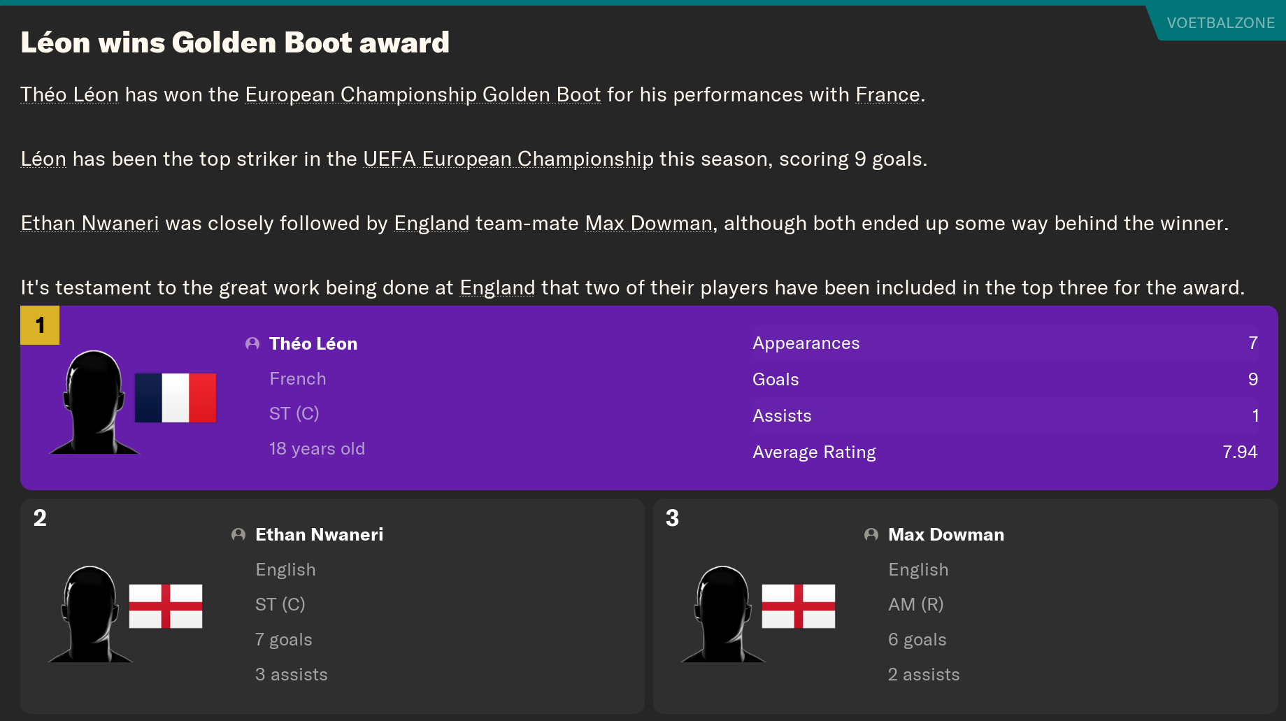 At 18 years old, Léon exploded into international football, firing France to the 2036 European Championship with 9 goals and outscoring Ethan Nwaneri and Max Dowman.