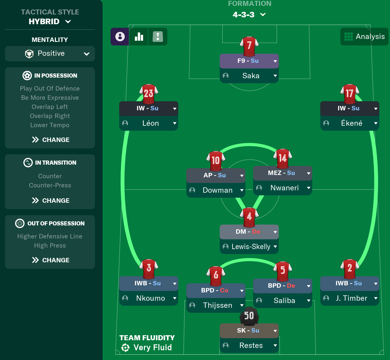 The system naturally forms a very Guardiola-esq, positional 2-3-5 however this is more by coincidence of creating a suitable platform for the most talented players in the squad.