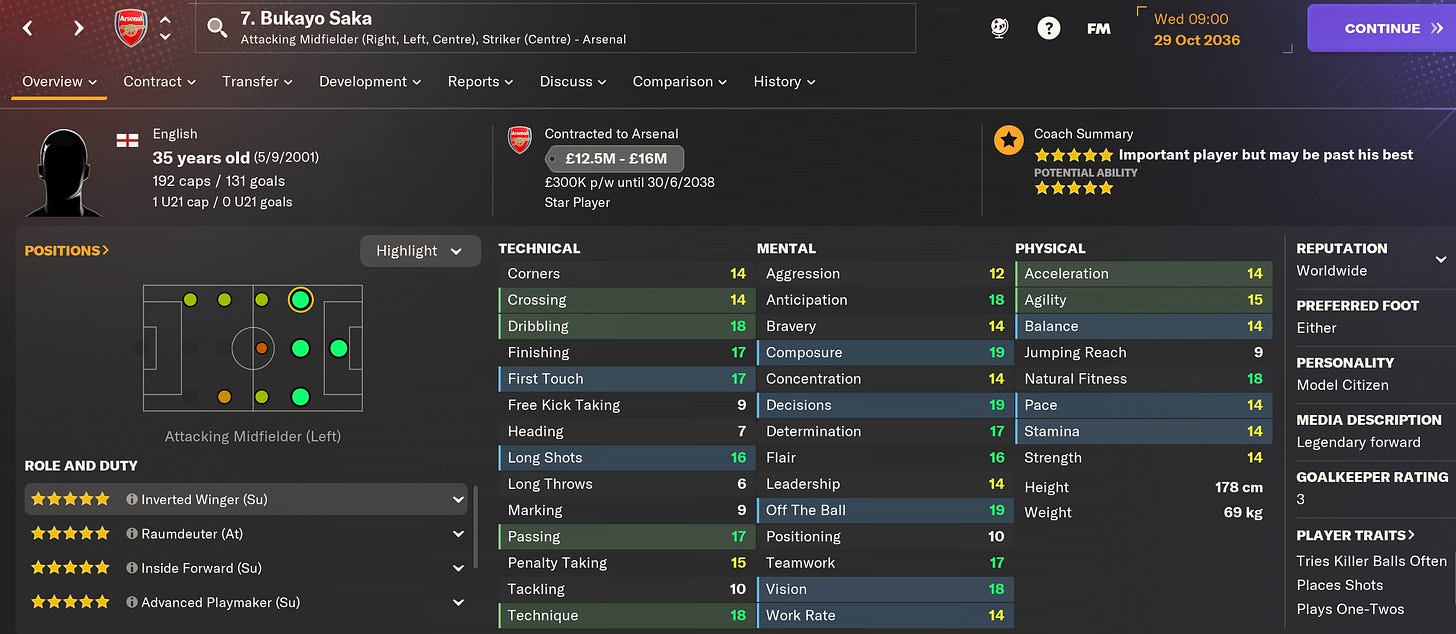 At 35 years young, Bukayo Saka remains technically and mentally outstanding, but is gradually losing his pace, agility, acceleration, etc.