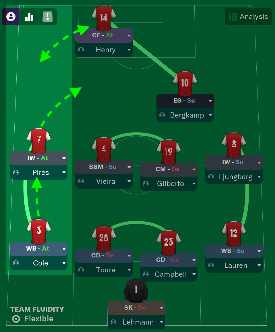 Combined with Focus Play down the Left and Thierry Henry drifting Wide, we have that Invincibles left-side dominant attack.